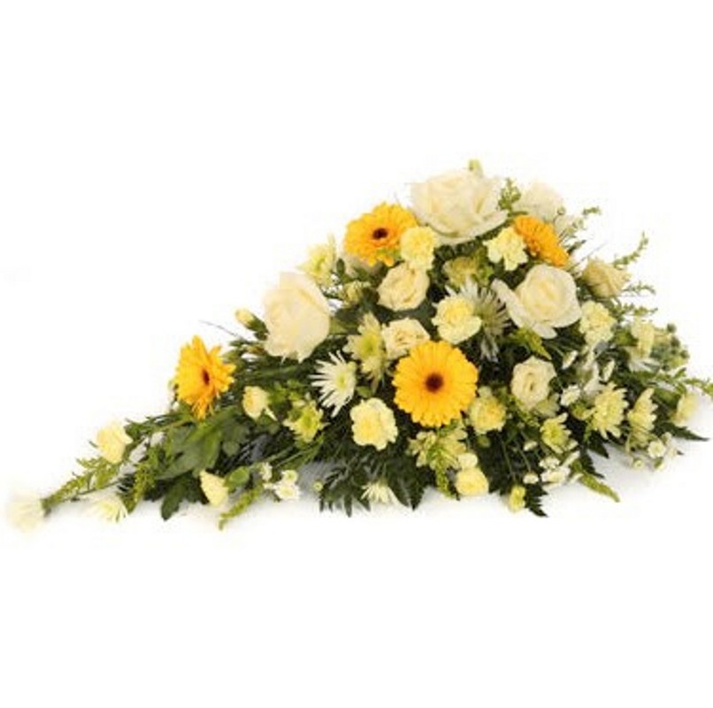 A traditional single ended spray of seasonal flowers to your preferred colour.